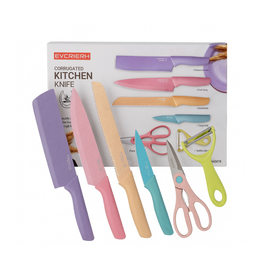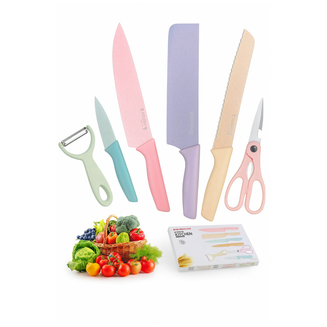 Set de Cuchillos de Cocina 7 Piezas – Diseño Pastel Ergonómico